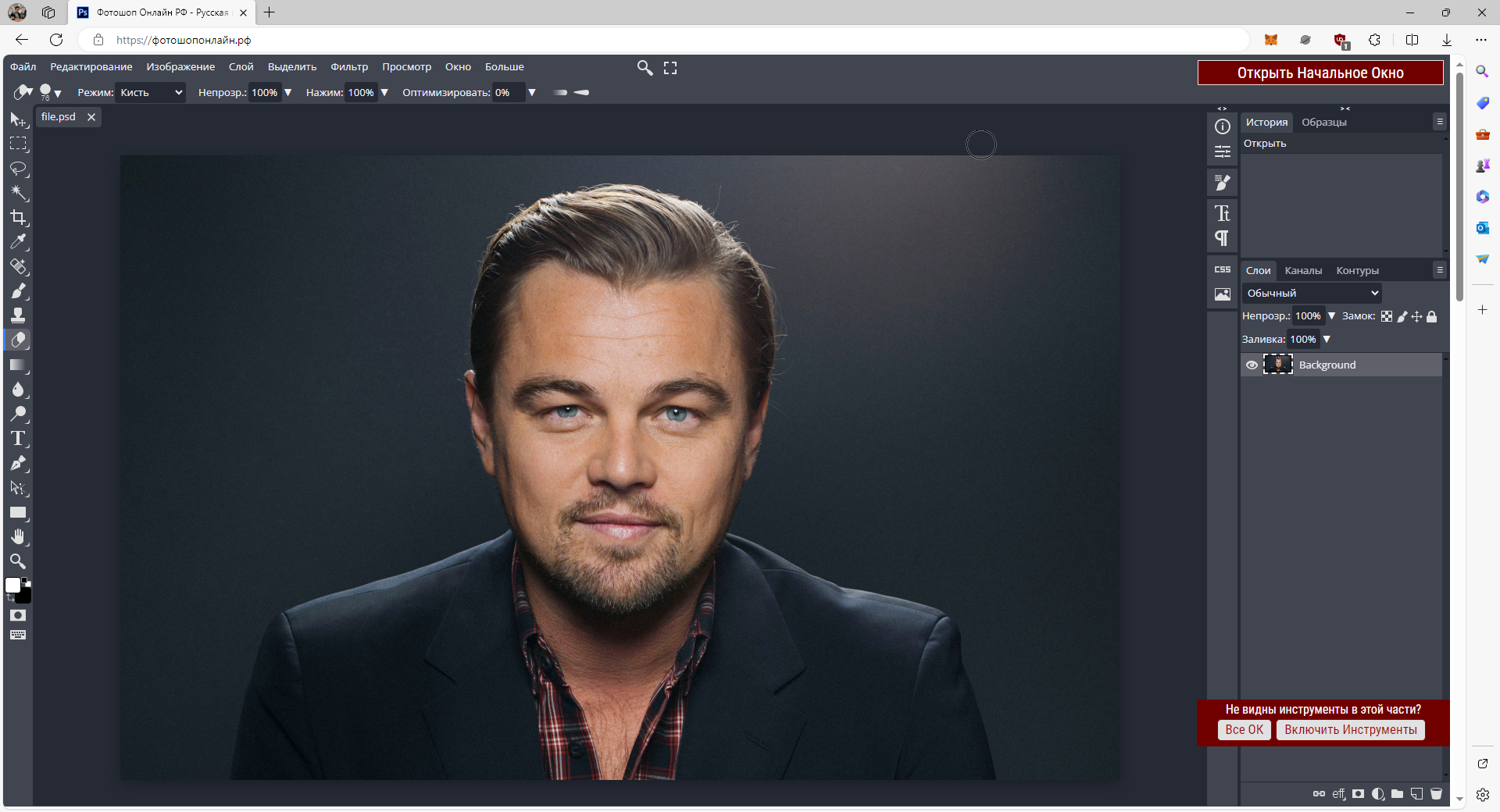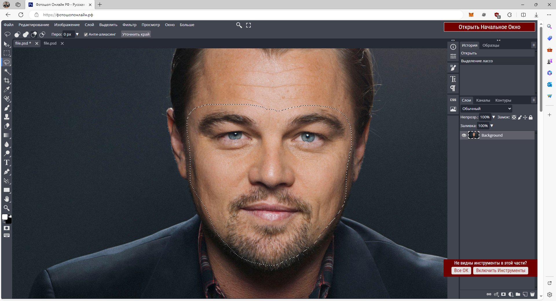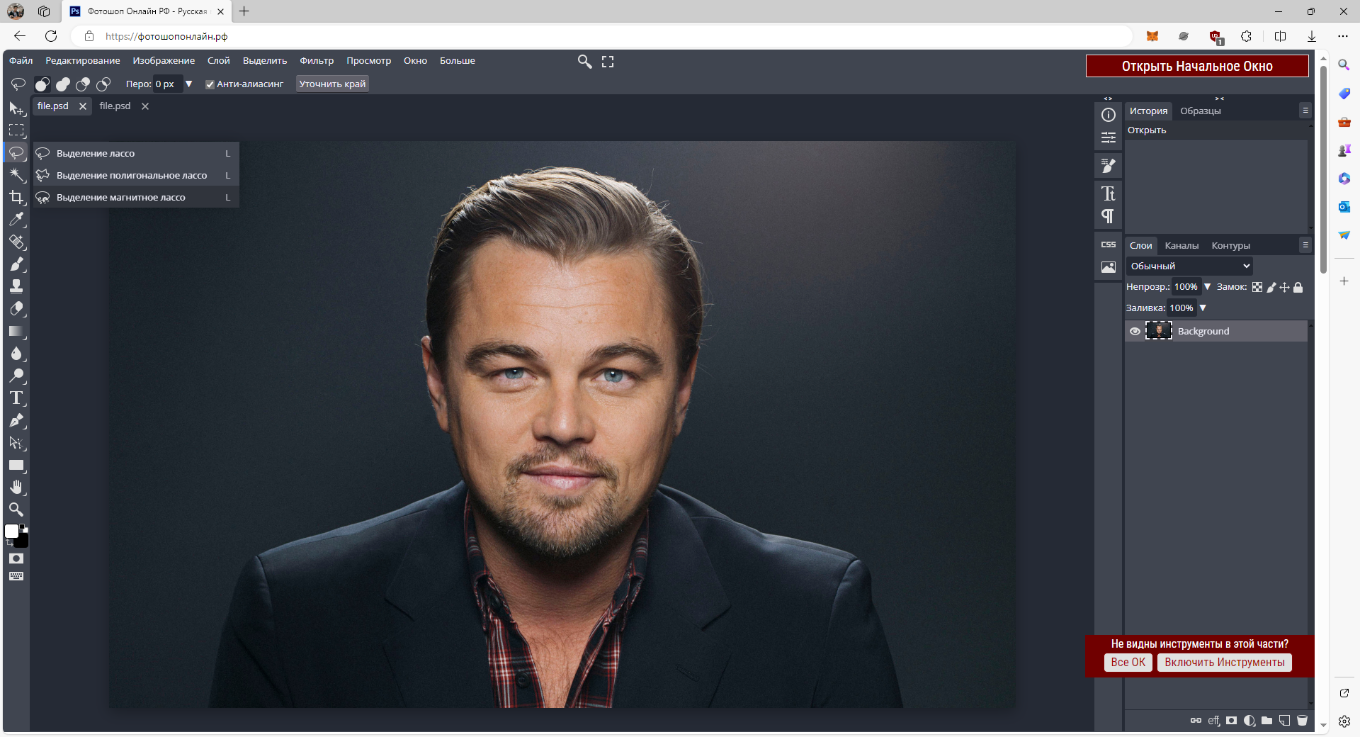 Найдем нашего Ди Каприо. Выбираем инструмент “Выделение магнитное лассо”