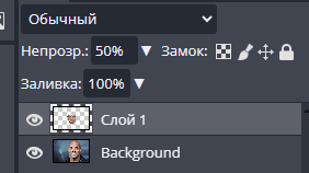 Сделаем непрозрачность слоя лица Ди Каприо на 50%