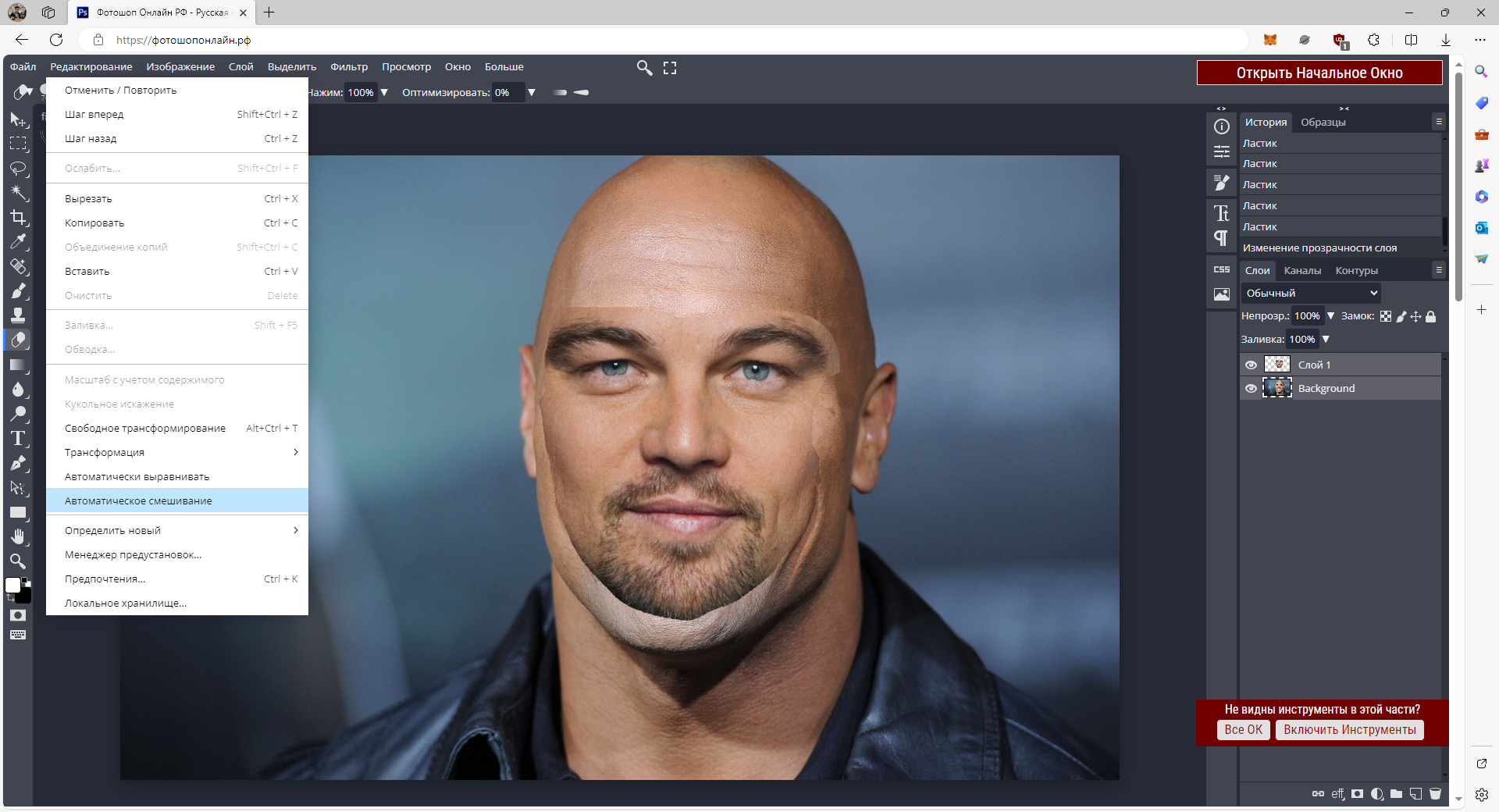 Выбираем инструмент Редактирование -> Автоматическое смешивание.